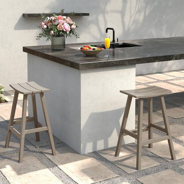 Franklin Weathered Wood 24 in. Poly HDPE Fade Resistant Outdoor Patio Saddle Seat Counter Height Bar Stool (Set of 2)