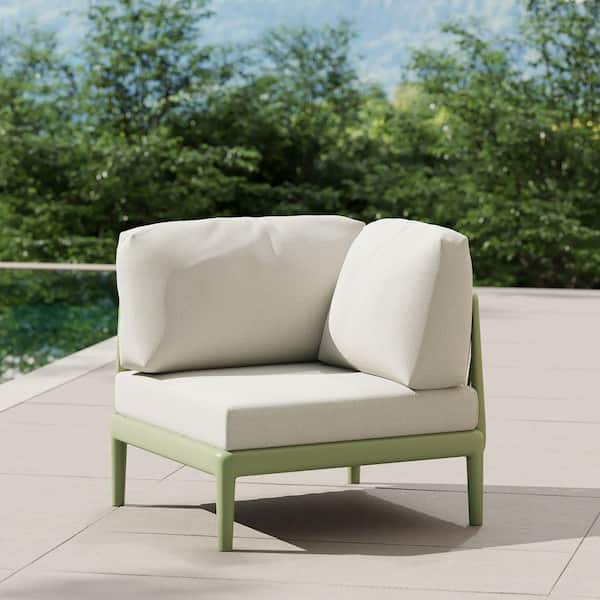 Frond and Form Outdoor Patio Deep Seating Green Poly Plastic All Weather Corner Club Chair with Ivory Cushions