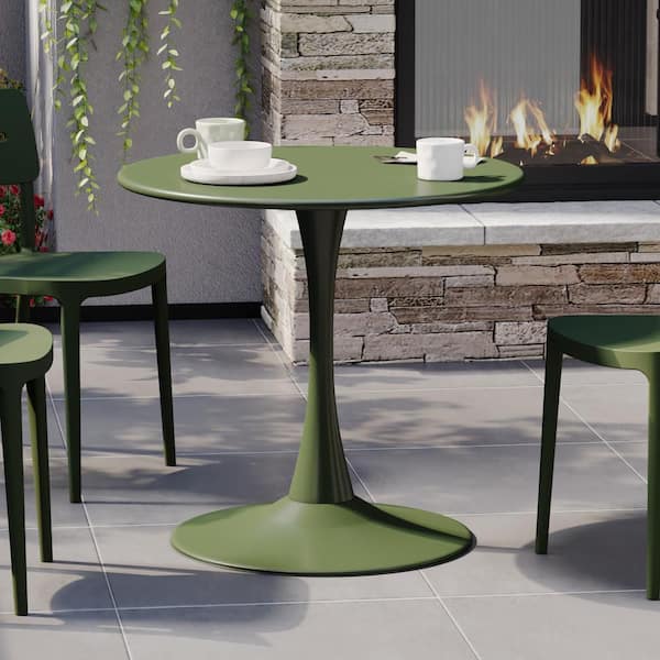 Frond and Form Outdoor Patio Modern 31.5 in. Round Steel Dining Table w/ Sturdy Tulip Base, Olive Green