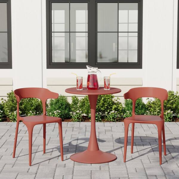 Frond and Form Outdoor Patio Modern Curved Back Poly Plastic Stacking Dining Side Chair (Set of 2), Red