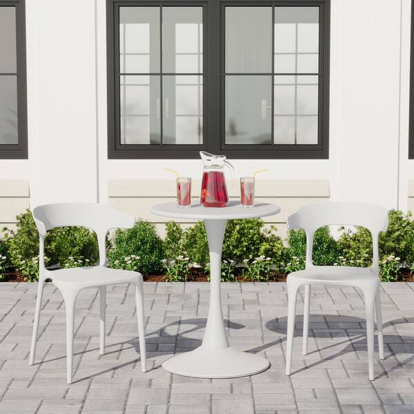 Frond and Form Outdoor Patio Modern Curved Back Poly Plastic Stacking Dining Side Chair (Set of 2), White