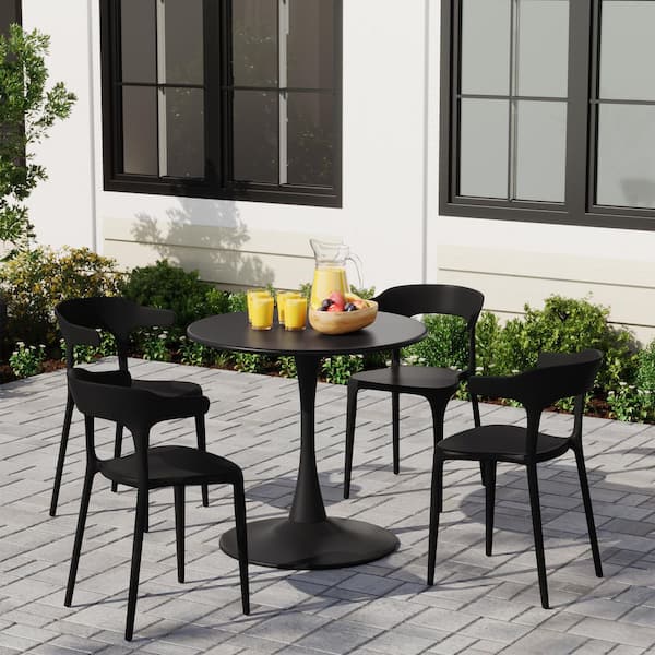 Frond and Form Outdoor Patio Modern Curved Back Poly Plastic Stacking Dining Side Chair (Set of 4), Black