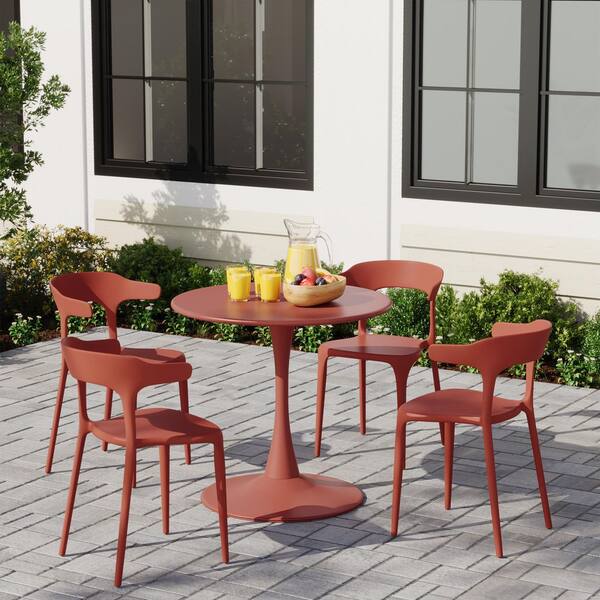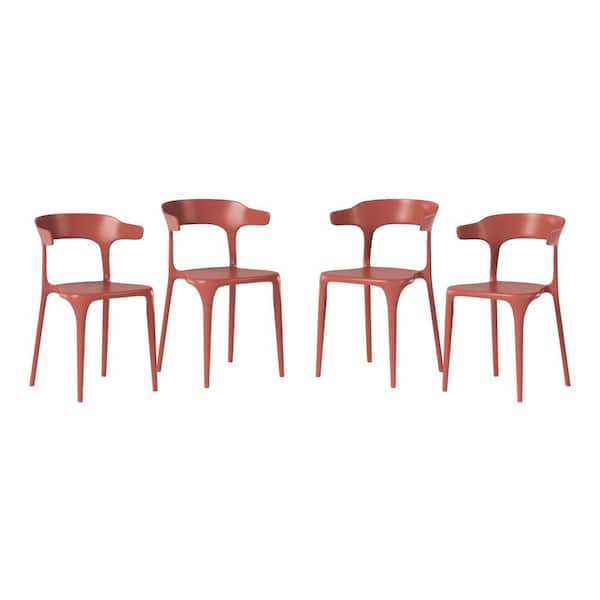 Frond and Form Outdoor Patio Modern Curved Back Poly Plastic Stacking Dining Side Chair (Set of 4), Red