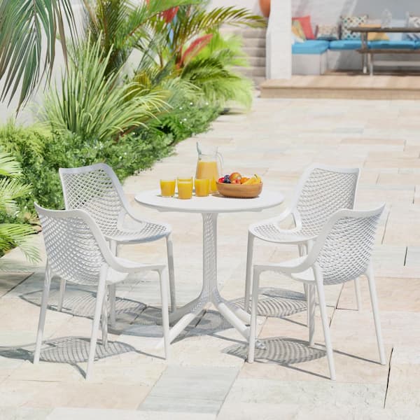 FrondandForm Modern Outdoor Patio Poly Plastic 31.5 in. Round Dining Table in White