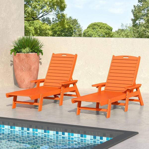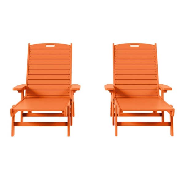 Harlo 2-Piece Orange HDPE Fade Resistant All Weather Plastic Reclining Outdoor Adjustable Back Chaise Lounge Arm Chairs