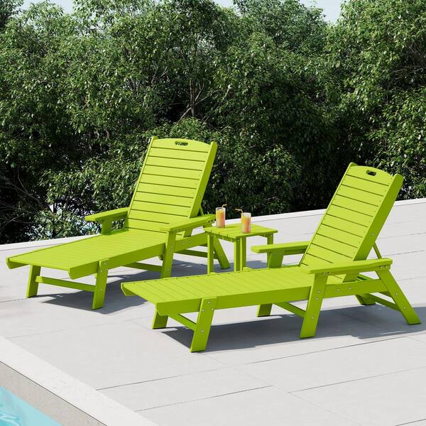 Harlo 3-Piece Lime Fade Resistant HDPE Plastic Reclining Outdoor Patio Chaise Lounge Arm Chair and Table Set