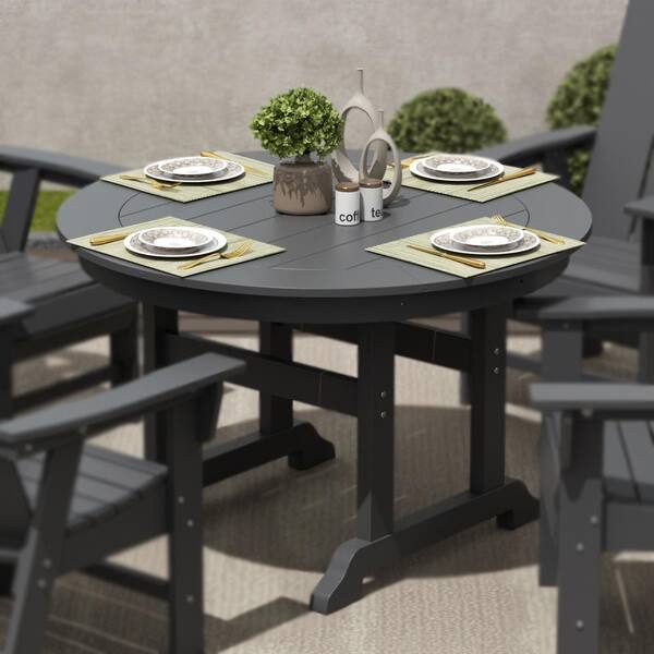Hayes 47 in. All Weather HDPE Plastic Round Outdoor Dining Trestle Table with Umbrella Hole in Gray