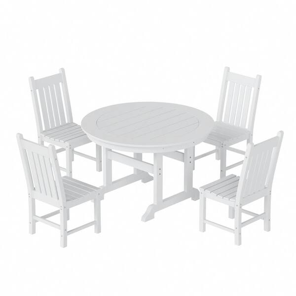 Hayes 5-Piece Round HDPE Plastic Outdoor Dining Set with Side Chairs in White