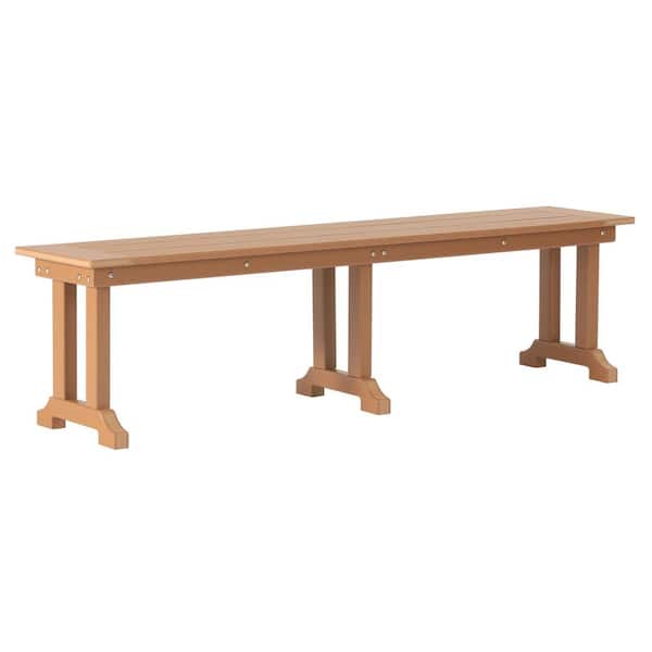 Hayes 65 in. Backless HDPE Plastic Trestle Outdoor Dining 2-Person Patio Garden Bench in Teak