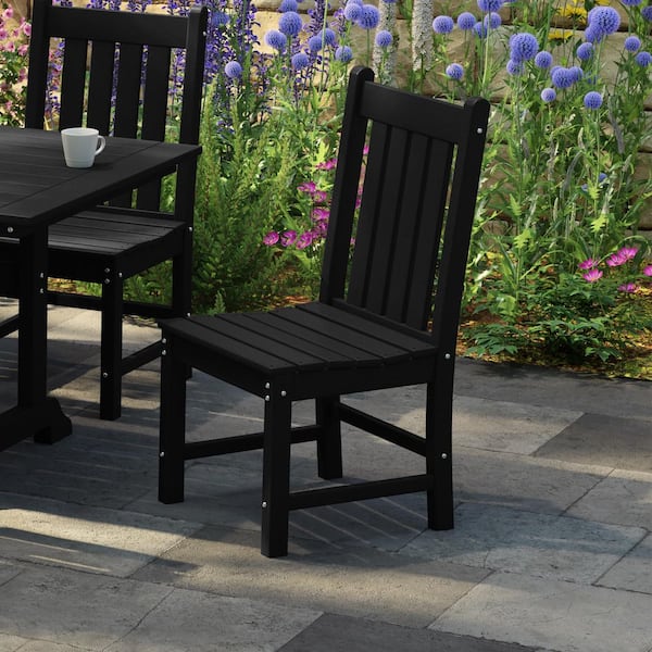 Hayes HDPE Plastic All Weather Outdoor Patio Armless Slat Back Dining Side Chair in Black
