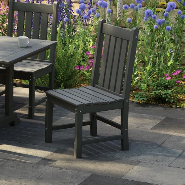 Hayes HDPE Plastic All Weather Outdoor Patio Armless Slat Back Dining Side Chair in Gray