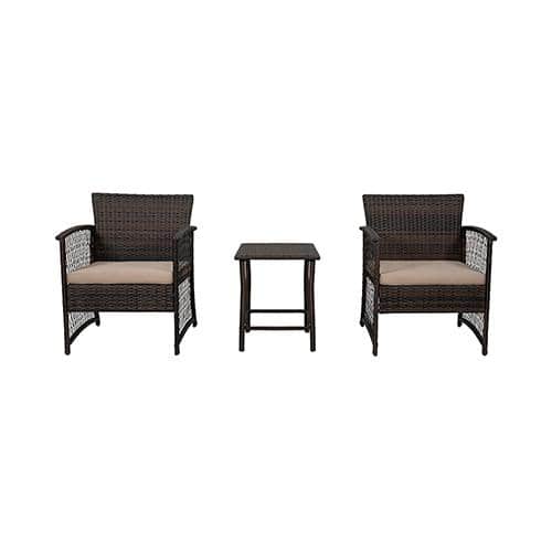 Highland Coffee 3-Piece Woven Rattan Wicker Patio Conversation Set with Beige Cushions