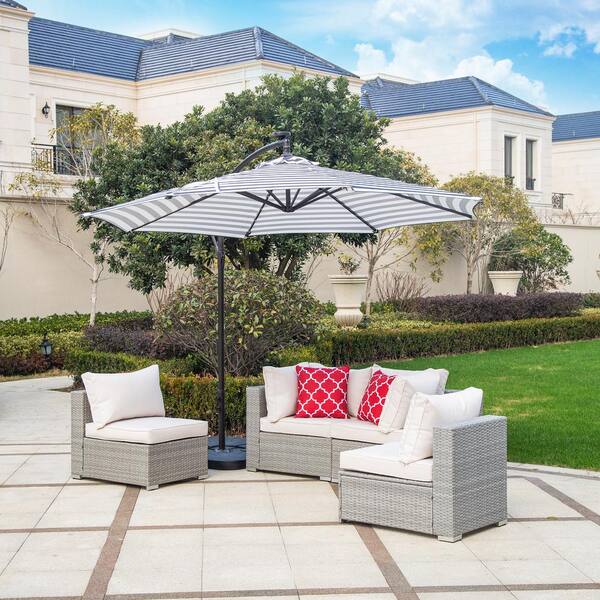 JAZZY 4-Piece Rattan Sofa Seating Group with Gray/Ivory Cushion and Pillow
