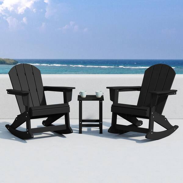 Laguna 2-Pack Fade Resistant Outdoor Patio HDPE Poly Plastic Classic Adirondack Porch Rocking Chairs in Black