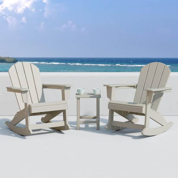 Laguna 2-Pack Fade Resistant Outdoor Patio HDPE Poly Plastic Classic Adirondack Porch Rocking Chairs in Sand