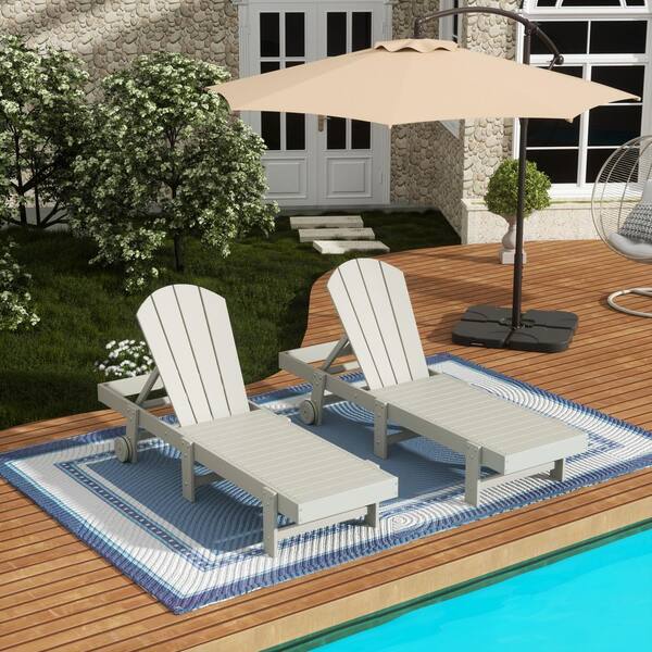 Laguna 2-Piece Fade Resistant HDPE Plastic Adjustable Outdoor Adirondack Chaise Loungers with Wheels in Sand