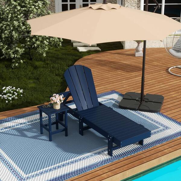 Laguna 2-Piece Fade Resistant HDPE Plastic Adjustable Outdoor Adirondack Chaise with Wheels and Side Table in Navy Blue