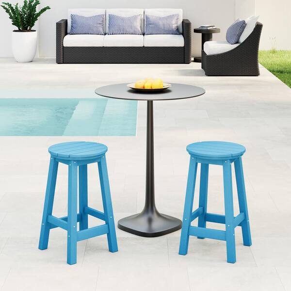Laguna 24 in. Round HDPE Plastic Backless Counter Height Outdoor Dining Patio Bar Stools (2-Pack) in Pacific Blue