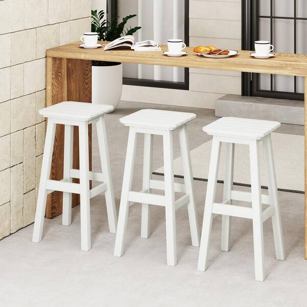 Laguna 29 in. HDPE Plastic All Weather Backless Square Seat Bar Height Outdoor Bar Stool in White, (Set of 3)