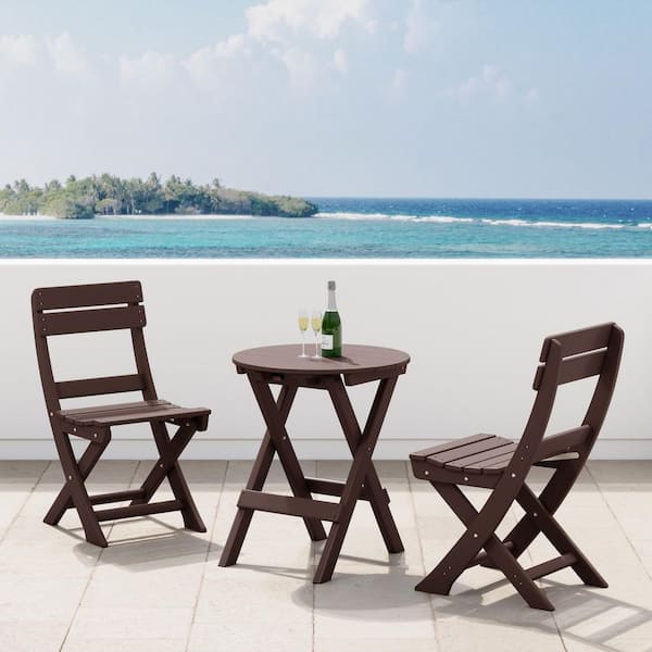 Laguna 3-Piece All Weather HDPE Plastic Outdoor Patio Rust Free Folding Bistro Dining Set, Dark Brown