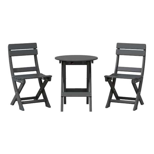 Laguna 3-Piece All Weather HDPE Plastic Outdoor Patio Rust Free Folding Bistro Dining Set, Gray