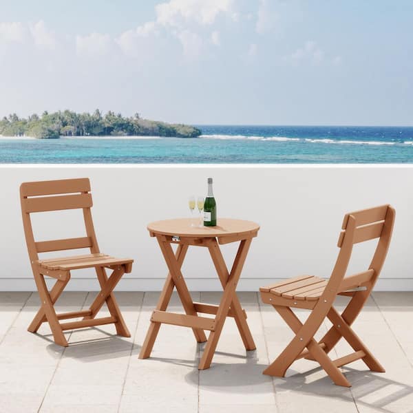 Laguna 3-Piece All Weather HDPE Plastic Outdoor Patio Rust Free Folding Bistro Dining Set, Teak