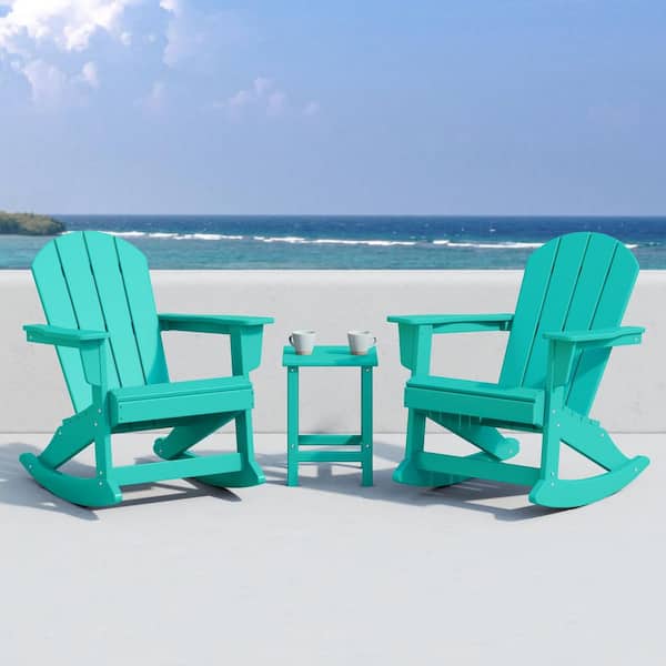 Laguna 3-Piece Fade Resistant Outdoor Patio HDPE Poly Plastic Adirondack Rocking Chairs and Side Table Set, Turquoise