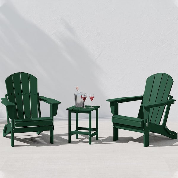 Laguna 3-Piece Fade Resistant Outdoor Patio HDPE Poly Plastic Folding Adirondack Chair Set with Side Table in Dark Green