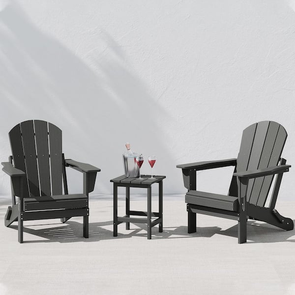 Laguna 3-Piece Fade Resistant Outdoor Patio HDPE Poly Plastic Folding Adirondack Chair Set with Side Table in Gray
