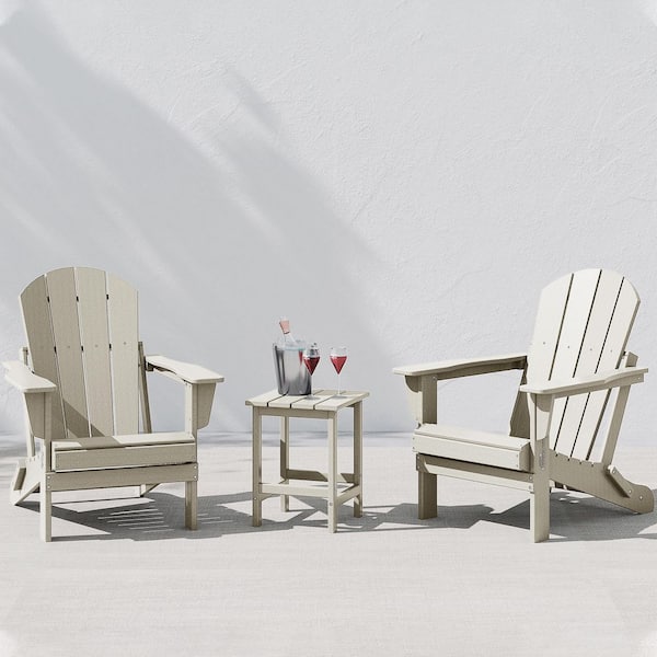 Laguna 3-Piece Fade Resistant Outdoor Patio HDPE Poly Plastic Folding Adirondack Chair Set with Side Table in Sand
