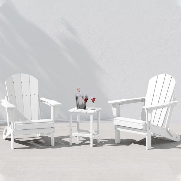 Laguna 3-Piece Fade Resistant Outdoor Patio HDPE Poly Plastic Folding Adirondack Chair Set with Side Table in White
