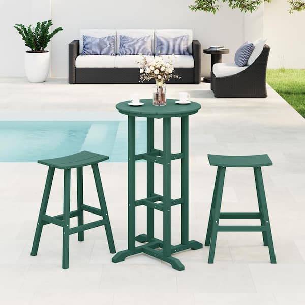 Laguna 3-Piece HDPE Weather Resistant Outdoor Patio Bar Height Bistro Set with Saddle Seat Barstools, Dark Green