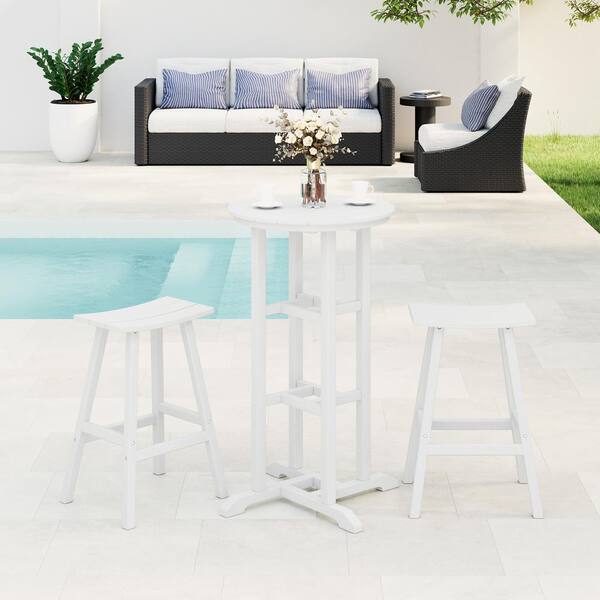 Laguna 3-Piece HDPE Weather Resistant Outdoor Patio Bar Height Bistro Set with Saddle Seat Barstools, White