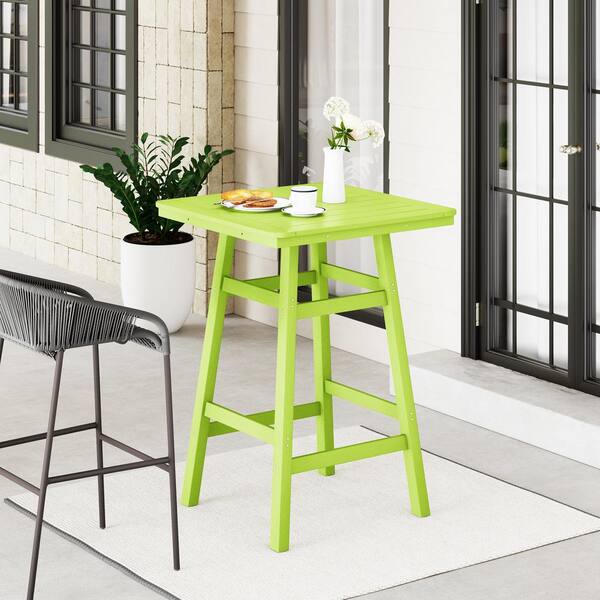Laguna 30 in. Square HDPE Plastic All Weather Outdoor Patio Bar Height High Top Pub Table in Lime