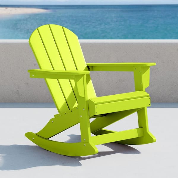 Laguna Fade Resistant Outdoor Patio HDPE Poly Plastic Adirondack Porch Rocking Chair in Lime