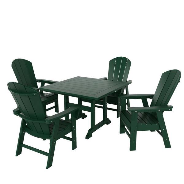 Laguna Outdoor Patio Adirondack Weather Resistant Dark Green 5-Piece HDPE Plastic Square Table Dining Set