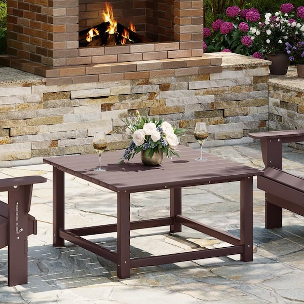 Laguna Outdoor Patio All Weather 31 in. Square HDPE Plastic Conversation Coffee Table in Dark Brown