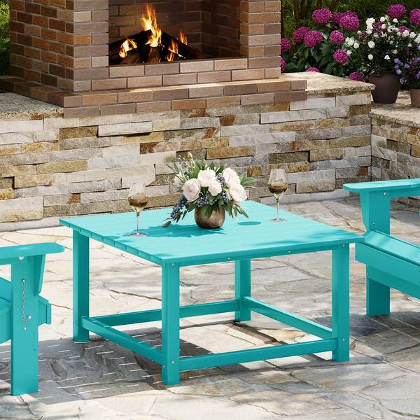 Laguna Outdoor Patio All Weather 31 in. Square HDPE Plastic Conversation Coffee Table in Turquoise
