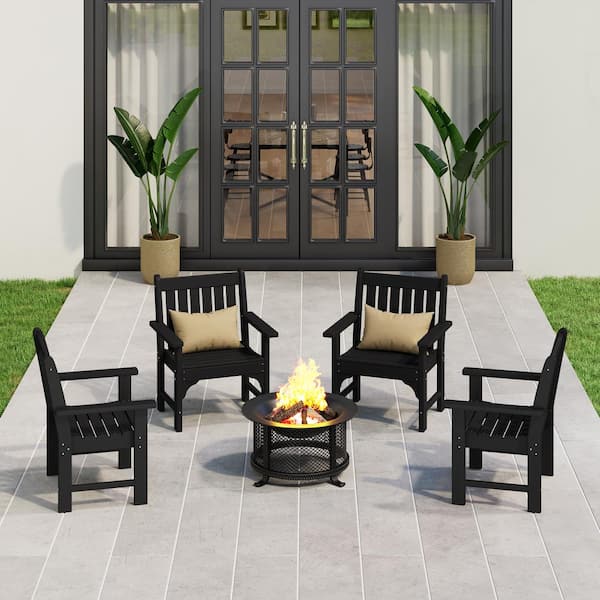 Laguna Outdoor Patio HDPE All Weather Fade Resistant Casual Garden Arm Chairs in Black, Set of 4 Lounge Chairs