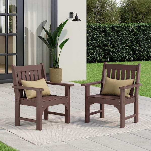 Laguna Outdoor Patio HDPE All Weather Fade Resistant Casual Garden Armchairs in Dark Brown, Set of 2 Lounge Chairs
