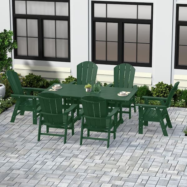 Laguna Outdoor Patio Weather Resistant Dark Green Adirondack 7-Piece HDPE Plastic Dining Set