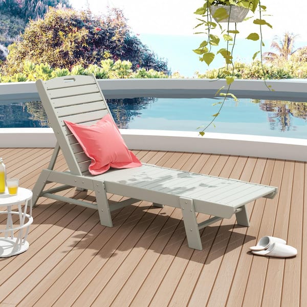 Laguna Sand Fade Resistant HDPE All Weather Plastic Outdoor Patio Reclining Chaise Lounge Chair with Adjustable Back