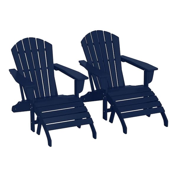 Mason Navy Blue 4-Piece Poly Plastic Outdoor Patio Classic Adirondack Fire Pit Chair Set With 2-Chairs and 2-Ottomans