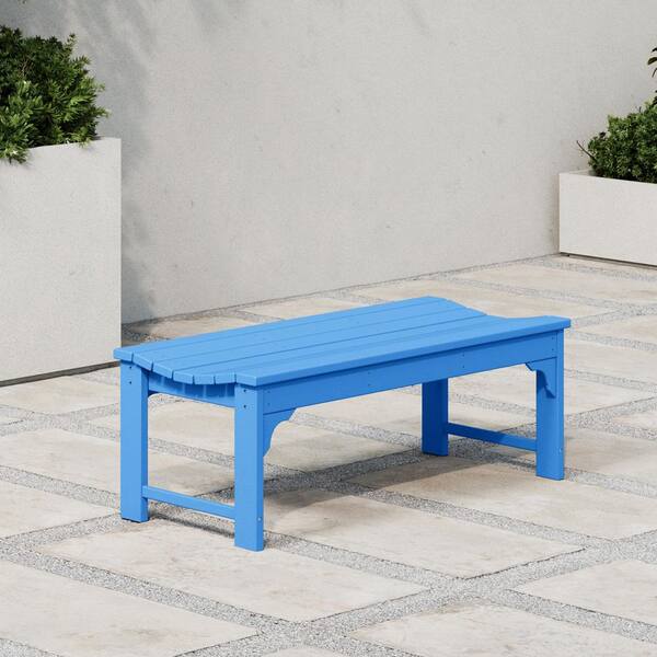 Mason Outdoor Patio All-Weather Fade Resistant HDPE Poly Plastic Backless Garden Bench in Pacific Blue