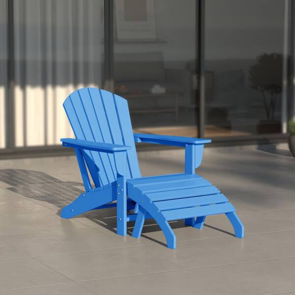 Mason Pacific Blue 2-Piece Poly Plastic Outdoor Patio Classic Adirondack Fire Pit Chair With Ottoman Set
