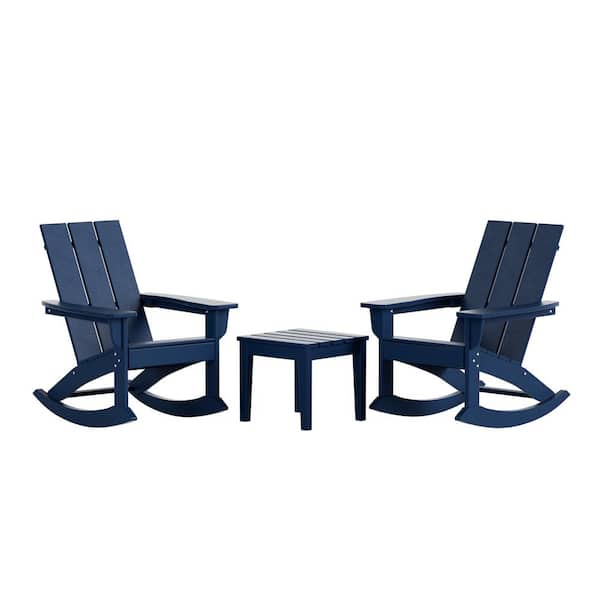 Shoreside Navy Blue HDPE Plastic Modern Rocking Poly Adirondack Chair Set of 2 With Side Table