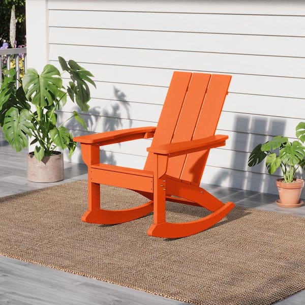 Shoreside Orange Plastic Modern Adirondack Outdoor Rocking Chair