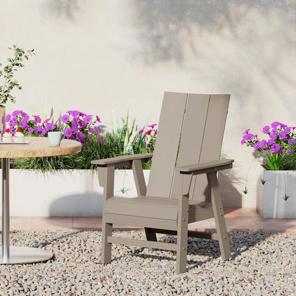 Shoreside Outdoor Patio Fade Resistant HDPE Plastic Adirondack Style Dining Chair with Arms in Weathered Wood