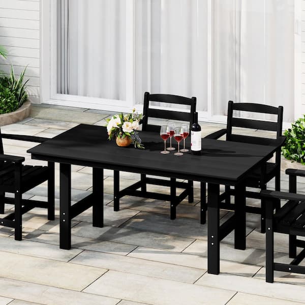 Shoreside Plastic All-Weather 66" x 34" Rectangular Outdoor Patio Dining Table, Black