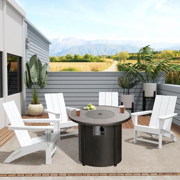 Shoreside White 5-Piece HDPE Plastic Round Fire Pit Patio Conversation Set